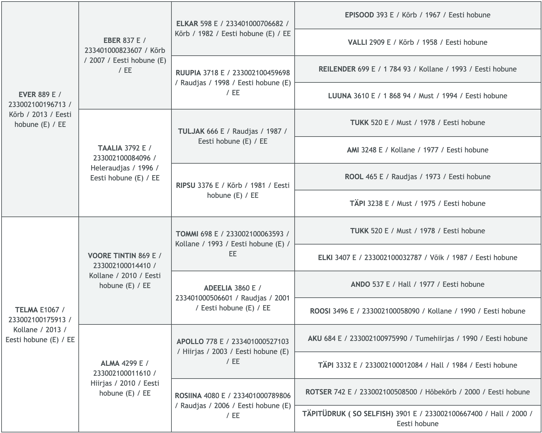 Eesti Hobuse Emmeliine andmed